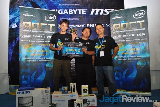 Juara 6 akhirnya dipanggil ke panggung, yaitu tim ABABIL. Tim ini merupakan runner up dari AOCT 2013 Jawa Barat & Banten yang kembali mencoba mengadu kemampuan dengan overclocker amatir dari berbagai daerah di turnamen tingkat nasional kali ini.