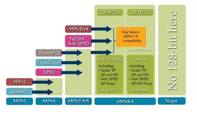 Beberapa hari lalu berita menarik datang dari salah satu harian Korean Herald yang mem-publikasikan artikel, memberitakan jika ARM tidak hanya sedang mengembangkan chip 64-bit tetapi juga sedang mengembangkan chip prosesor berbasis 128-bit untuk tahun 2015! Bagi orang yang mengerti mengenai arsitektur sebuah prosesor, tentu saja tidak akan percaya begitu membaca berita tersebut, namun sayangnya pemberitaan media yang bombastis dan terkesan mengada-ada (tanpa sumber jelas), membuat rumor ini tersebar luas, hingga terdengar oleh salah satu petinggi ARM (CMO) dan langsung membuat pernyataan resmi bahwa berita tersebut tidaklah benar.