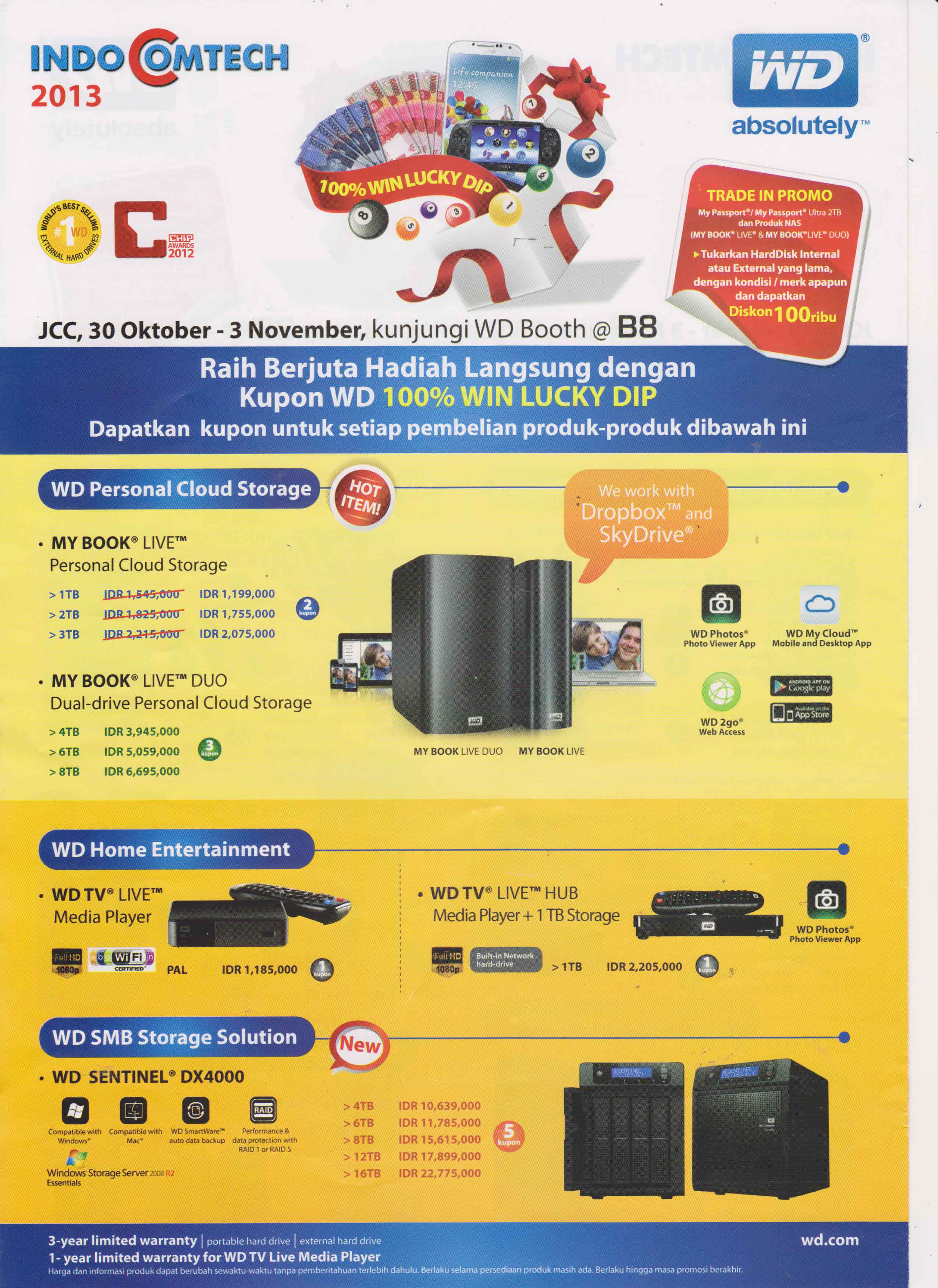 Sebelumnya kami telah memaparkan produk-produk gadget dan komputer seperti smartphone, tablet, laptop serta PC (dekstop/All-in-One). Belum lengkap rasanya jika kami tidak turut menyajikan beberapa aksesoris pendukung beragam produk komputer tersebut yang turut dipromosikan dalam ajang Indocomtech 2013 kali ini. Daftar promo ini akan kami update selama pameran Indocomtech 2013 berlangsung (30 Oktober – 3 November 2013).