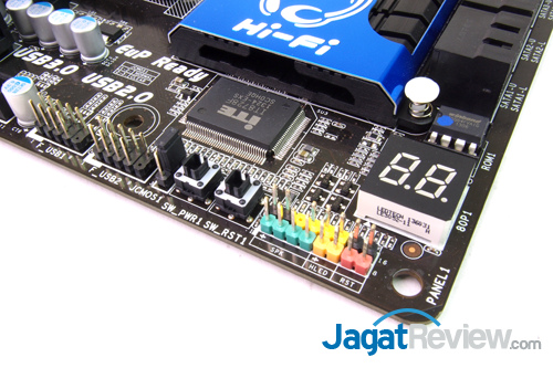 Debug LED di sudut kanan bawah motherboard selain berfungsi untuk deteksi masalah pada sistem juga dapat digunakan untuk mengetahui temperatur prosesor saat sudah berada di dalam sistem operasi.