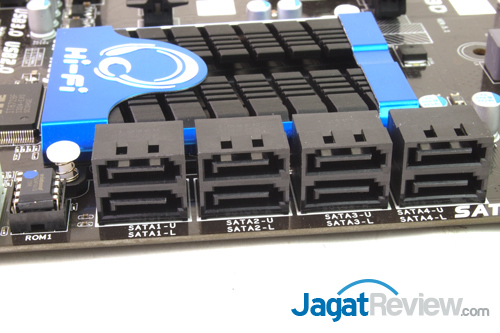 Biostar Hi-Fi A88W 3D menyediakan 8 buah port SATA 6Gbps dimana semua port tersebut diakomodir chipset A88X. Di sebelah kiri port SATA dapat dijumpai chip BIOS motherboard ini.