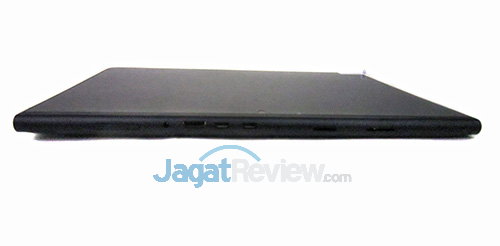 Terdapat banyak port/slot dan sedikit tombol pada tablet ini. Pada bagian atas terdapat enam port dan satu tombol, yaitu charger 5 volt, slot microHDMI, slot microUSB, slot host external 3G, slot microSD, slot SIM Card dan tombol Menu-Escape.
