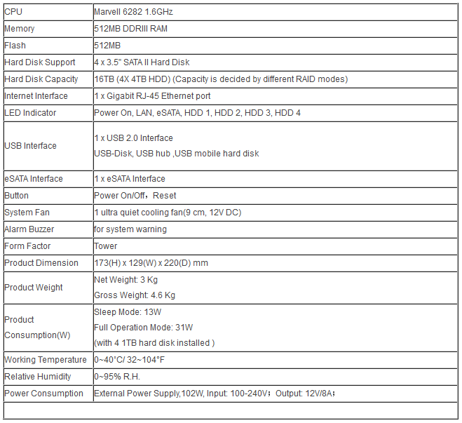 Berikut ini adalah spesifikasi dari F4-NAS seperti yang tertera di situs resmi TerraMaster: