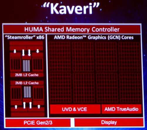 Dalam acara pembukaan APU13 di San Jose, 11 November 2013, AMD sudah menampilkan komparasi antara APU terbarunya melawan sistem dengan Intel Core i7-4770K dan VGA GeForce GT630. Dari presentasi tersebut, kami memperoleh detail lebih lannjut mengenai prosesor Kaveri yang digunakan.