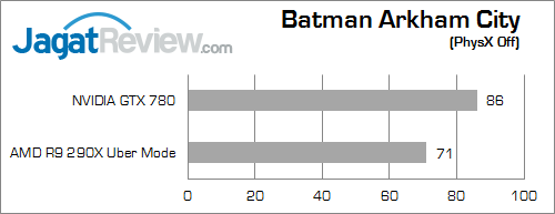 Radeon R9 290X kembali mendapatkan frame rate di atas 60 fps pada pengujian game ini. GeForce GTX 780 terlihat unggul sekitar 11% di atas Radeon R9 290X.