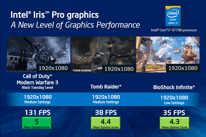 Prosesor desktop Brodwell memang belum memulai debut perdananya. Akan tetapi baru-baru ini ada kabar menarik jika prosesor desktop Broadwell akan dilengkapi iGPU Intel GT3 alias Intel Iris/Iris Pro. Seperti kita ketahui, iGPU Iris/Iris Pro saat ini hanya bisa ditemukan pada prosesor mobile Intel Core i7 Haswell dan Core i Seri R (embedded processor) sedangkan prosesor desktop Haswell hanya dilengkapi Intel HD Graphics 4600. Dibandingkan HD Graphics 4600, Iris/Iris Pro dilengkapi Execution Units dua kali lipat lebih banyak. Tidak hanya itu, versi Iris Pro juga dilengkapi eDRAM alias memori khusus untuk iGPU sebesar 128MB. Dengan spesifikasi seperti itu, Iris/Iris Pro mampu menawarkan performa 80% lebih bertenaga dibandingkan HD Graphics 4600 pada Core i7 4770K.