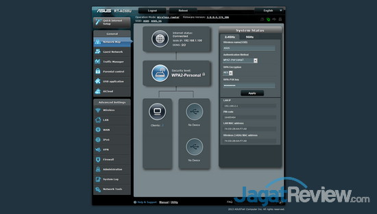 Router dari Asus yang satu ini merupakan salah satu perangkat router Wireless AC pertama yang datang ke lab. Jagat Review. Tentu saja, sebagai sebuah teknologi baru, kami cukup penasaran dengan kemampuan yang diusung oleh standar Wireless AC tersebut, terutama dalam hal bandwidth maksimal yang didukung untuk transfer data antara router dengan berbagai perangkat lain dalam jaringan. Oleh karena itu, kami mencoba melakukan pengujian singkat untuk melihat kecepatan yang Wireless AC dibandingkan dengan standar yang banyak digunakan saat ini, Wireless N, dengan menggunakan router dari Asus ini. Hasil pengujian akan kami hadirkan dalam bentuk artikel terpisah dalam waktu dekat ini!