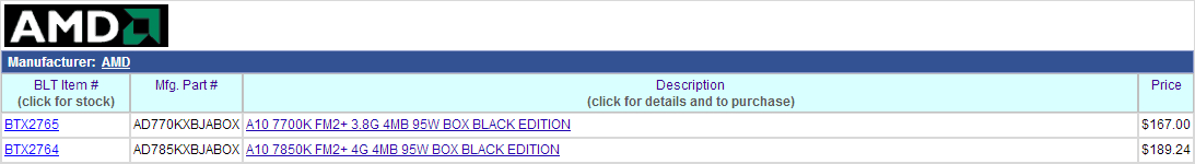Dalam waktu dekat, seharusnya AMD segera menghadirkan prosesor APU generasi empat mereka, Kaveri. Meskipun baru akan memulai debut awal tahun 2014 mendatang, pre-order untuk prosesor AMD APU Kaveri ternyata telah dibuka di sejumlah toko online luar. Salah satunya adalah BLT yang telah membuka pre-order AMD A10-7850K dan A10-7700K.