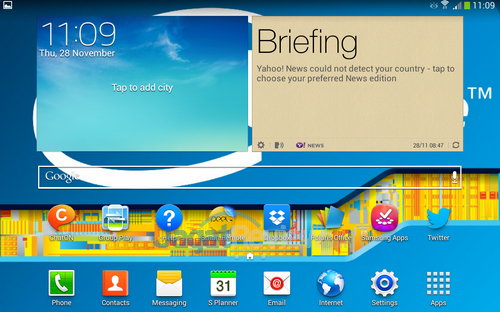 Home screen default pada Samsung Galaxy Tab 3 GT-P5200 memiliki tiga buah layar dan hanya menggunakan launcher standar saja.