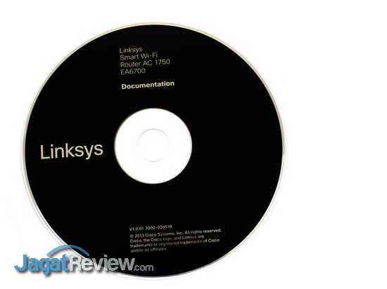 Hadir dengan kemasan box bercorak baru khas Linksys, kehadiran router ini disertai pula dengan beberapa perlengkapan pendukung yang bertujuan memudahkan pengguna dalam menggunakan router ini. Beberapa perlengkapan yang disertakan Linksys adalah: