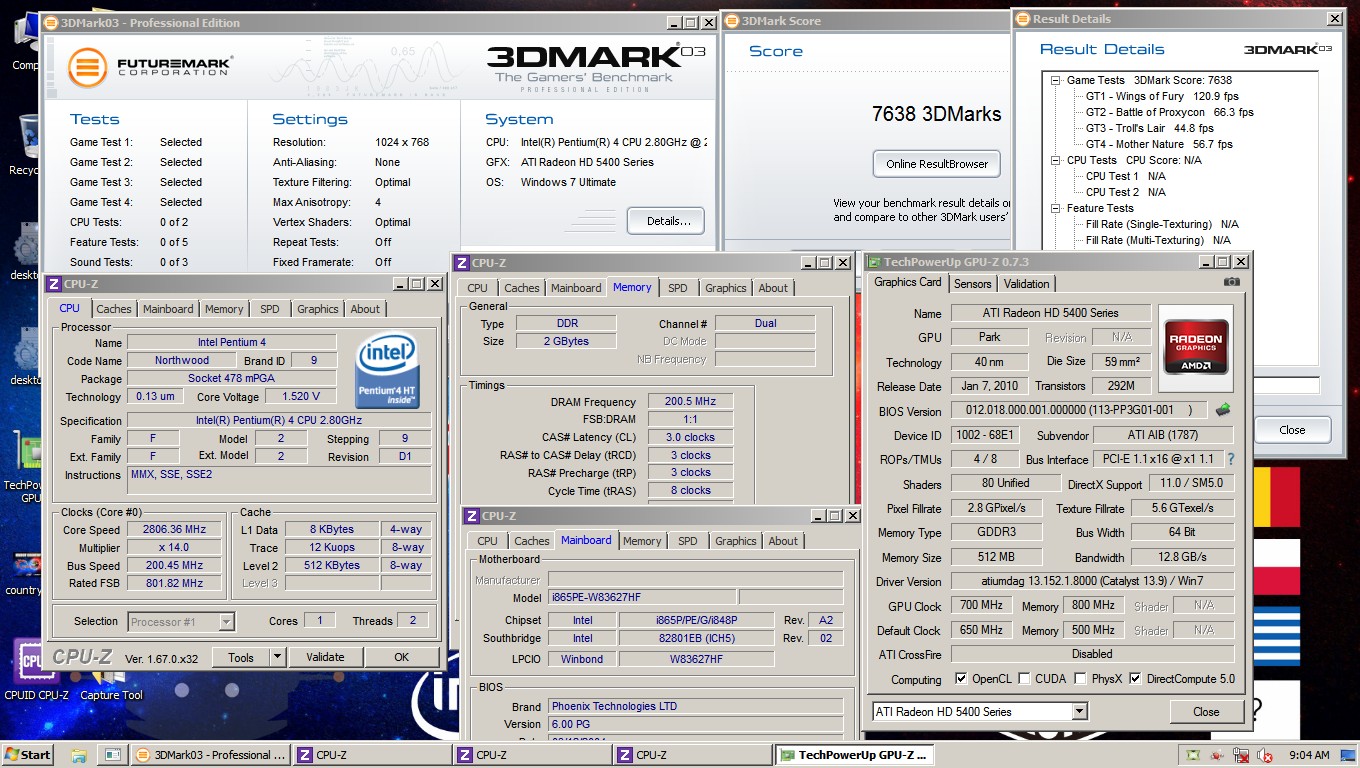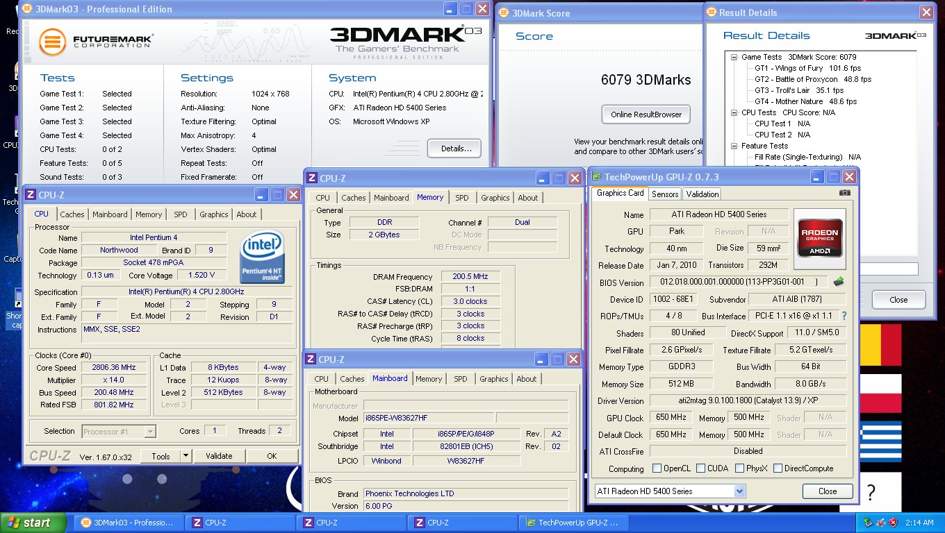 Meski kami sempat takut bahwa sistem ini akan dihantui oleh masalah performance bottleneck, ternyata tidak demikian yang terjadi. VGA PCI Radeon HD 5450 ini berfungsi normal pada sebuah Platform Klasik berbasiskan Pentium 4 Northwood. Berikut ini skor sistem kami pada saat default: