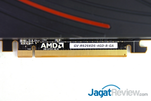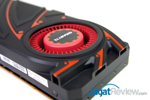 Hampir tidak ada perbedaan fisik sama sekali antara Gigabyte Radeon R9 290X dengan Radeon R9 290X. Perbedaan yang tampak antara Gigabyte Radeon R9 290X dan Radeon R9 290X hanya terletak pada stiker yang terpasang pada kipas saja.