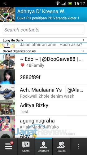 Tampilan kontak BBM di Android secara default adalah grid. Jika memiliki kontak BBM yang sudah banyak akan sulit untuk menemukan kontak yang dicari. Untuk merubahnya ke List cukup masuk ke pilihan BBM Settings > geser ke bawah hingga ke bagian Contact > ubah Contact Layout nya menjadi List.