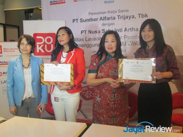 “Untuk melakukan transaksi saat ini, sudah semakin mudah. DOKU sendiri telah menyediakan pelayanan transaksi secara online sejak tahun 2007 dan kami telah menyediakan jasa transaksi terhadap berbagai merchant lainnya. Kerja sama dengan PT Sumber Alfaria Trijaya Tbk. ini bertujuan untuk memberikan pelayanan transaksi yang lebih mudah dan nyaman terhadap konsumen,” tutur Ibu Himelda Renuat selaku Chief Marketing Officer dari DOKU yang hadir untuk memberikan kata sambutan dalam acara peresmian kerja sama ini.