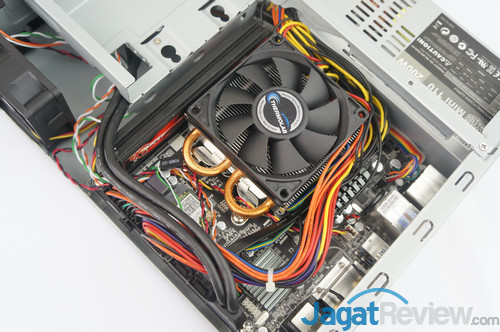 Sayangnya, casing ini kan memberi masalah bagi beberapa pengguna yang HSF-nya agak tinggi, karena CM sendiri menyarankan penggunaan HSF dengan tinggi maksimal 55mm, ini sedikit lebih rendah dari HSF Stock AMD Kaveri kami, yang akhirnya membuat kami mencari solusi pendingin alternatif yang lebih tipis.