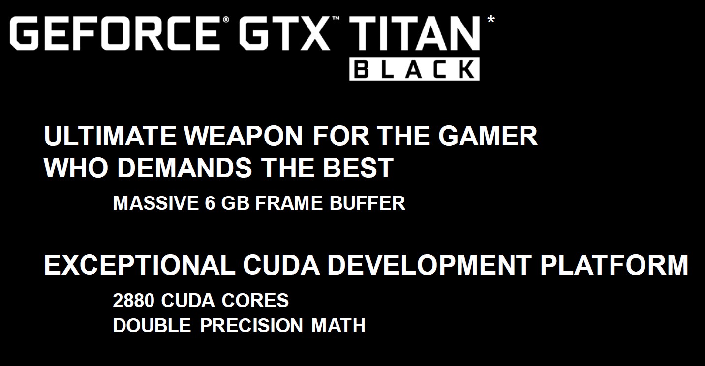 Setelah hampir satu tahun lalu meluncurkan GTX TITAN, hari ini NVIDIA resmi meluncurkan single-GPU baru terkencang mereka saat ini. GPU tersebut disebut dengan nama yang tidak jauh berbeda dari pendahulunya, yakni NVIDIA GTX TITAN BLACK.