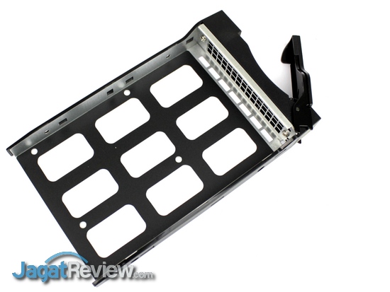 Dua buah drive bay yang ada di NAS ini dapat diakses dengan mudah dari sisi depan. Pengguna bisa melepas storage yang terpasang di NAS ini dengan membuka kunci bracket dan menariknya. Bracket dari perangkat ini mampu mengakomodasi penggunaan storage dalam ukuran 3.5″ maupun 2.5″.