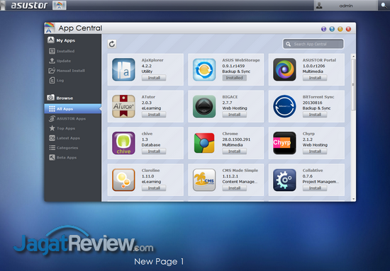 Selain aplikasi yang bisa mendatangkan fitur media player pada NAS ini, Asustor juga menyediakan berbagai aplikasi yang bisa mengubah perangkat ini sebagai server untuk berbagai macam kebutuhan, seperti web server, multimedia server, database server, dan lain sebagainya. NAS ini juga bisa membantu pengguna mengelola berbagai file multimedia yang ada di dalamnya dengan memanfaatkan berbagai aplikasi yang bisa mencatat dan mengelompokkan multimedia berdasarkan jenisnya. Tidak ketinggalan, aplikasi download manager dan torrent juga tersedia dan siap dimanfaatkan pengguna untuk mengambil file dari Internet.