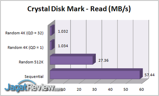 Hasil dari Crystal Disk Mark membuktikan bahwa performa penulisan data ke storage dari perangkat ini memang baik. Selain itu, hasil pengujian pembacaan data ke storage juga bisa dikatakan cukup baik.