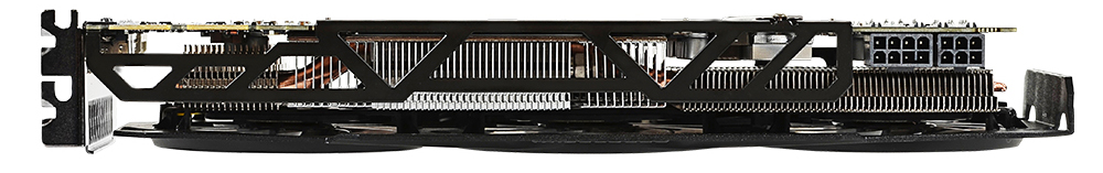 R9 280 WindForce OC ini menggunakan 2 buah power connector (8-pin dan 6-pin). Untuk menggunakan graphics card ini, Gigabyte menyarankan penggunaan power supply minimal sebesar 600 W. Sedangkan pada bagian belakang, graphics card ini memiliki I/O berupa satu buah port DVI-I, 2 buah mini DisplayPort, dan satu buah HDMI.