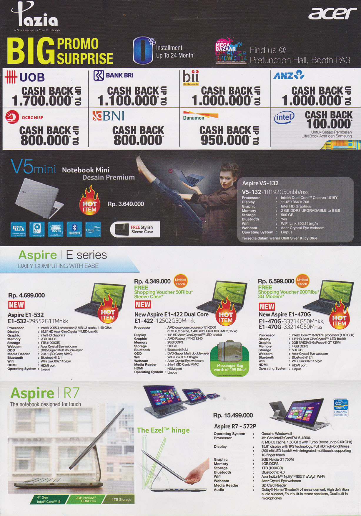 Mega Bazaar Consumer Show 2014 memang sudah menjadi salah satu event terbaik untuk mendapatkan berbagai produk serta informasi dunia IT terkini. Di event tersebut, biasanya para distributor juga turut memberikan diskon yang besar untuk produknya. Apalagi dengan hadirnya banyak perangkat baru yang sedang tren saat ini, maka momen ini dirasa cocok bagi Anda untuk berbelanja. Setelah sempat memberikan kepada Anda berbagai promo terkait Smartphone dan Tablet, kali ini JagatReview akan memberikan beberapa penawaran yang cukup menarik untuk Notebook dan PC jenis lainnya.