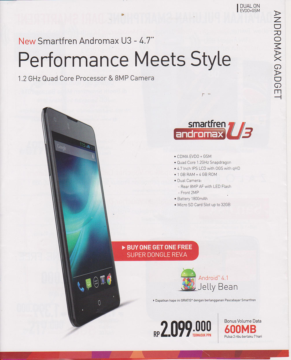 - Wizard Quadra V7 – Rp 3.799.000 *Cashback 300ribu, free Indosat Mentari 9GB + Exclusive Leather Case