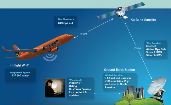 Dalam menawarkan kecepatan internet 70Mbps, Gogo mengadopsi teknologi satelit Spot-Beam dan antena satelit berbasis 2Ku. Antena pemancar 2Ku menawarkan dua kali lebih efisien dibanding antena spektral lainnya yang umumnya dipakai industri penerbangan komersial. Ukuran antenanya pun jauh lebih kecil, yakni 4,5 inci. Sementara Satelit Spot-Beam mampu menjangkau area-area terpencil yang dilalui pesawat.