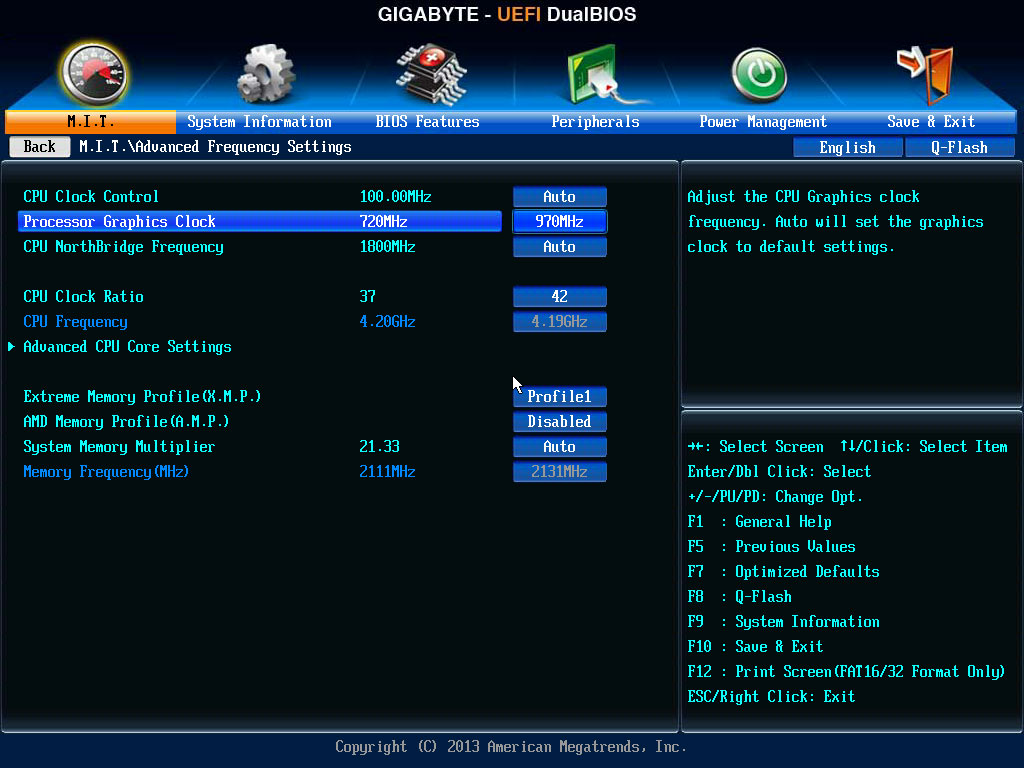 - IGP Frequency: 970Mhz (Default: 720Mhz)