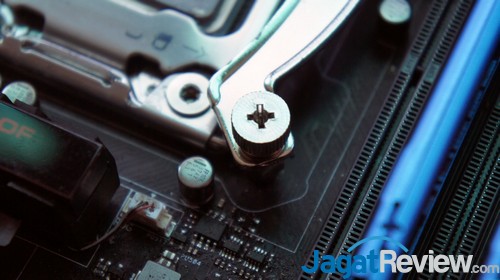 Dapat kita lihat pada gambar diatas, badan nya yang ramping membuat heatsink tersebut tidak menghalangi slot RAM yang ada, sehingga jika Anda ingin memakai RAM ber-heatspreader tinggi tidak perlu khawatir akan mengganggu pemasangan heatsink tersebut.