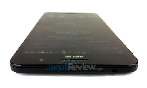 Pada sisi bagian atas dapat ditemukan lubang audio 3,5 mm serta lubang microphone.