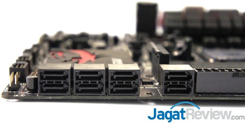 Header yang disediakan hampir mirip dengan motherboard MSI lainnya. Terdapat tiga USB 2.0 header, satu header USB 3.0, serta delapan buah fan header yang posisinya sangat baik karena tidak mengganggu saat pemasangan header lain.