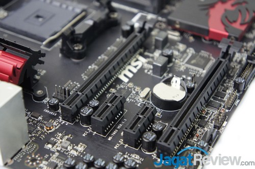 MSI menyediakan empat buah slot DDR3 dengan dukungan kapasitas memory hingga 32 GB (max 8 GB per slot). Sementara itu, untuk kecepatan memori, motherboard ini mendukung penggunaan memori hingga 2400 Mhz. Tidak jauh dari slot memori, dapat ditemukan juga onboard button serta switch slow mode.