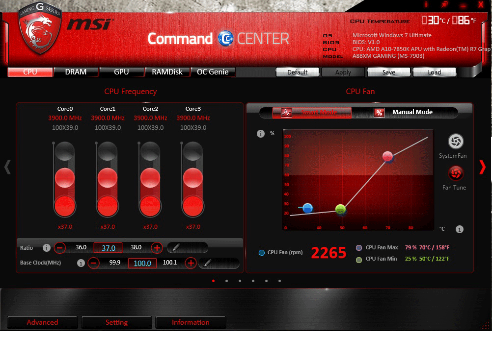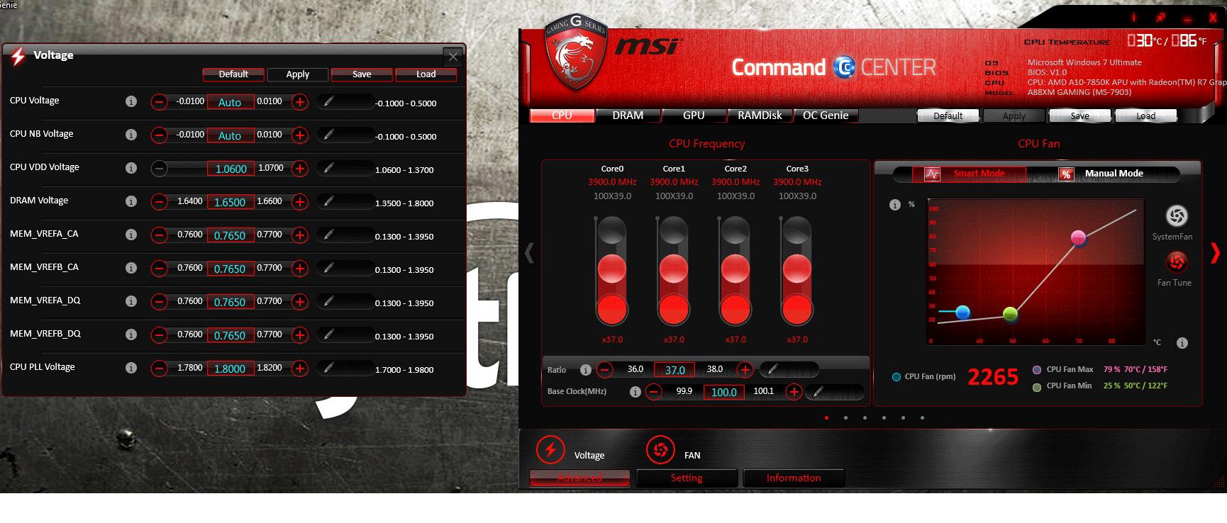MSI COMMAND CENTER: Utility yang satu ini memiliki banyak sekali fungsi. Selain bisa digunakan untuk mengatur konfigurasi OC Genie, melakukan tweaking CPU, GPU, dan DRAM juga dapat dilakukan dengan mudah disini. Pengaturan voltase juga disediakan di dalam aplikasi ini. Aplikasi ini juga dapat digunakan untuk memantau suhu secara real time. Tidak lupa, kita juga dapat mengontrol kecepatan fan yang kita inginkan pada motherboard ini.