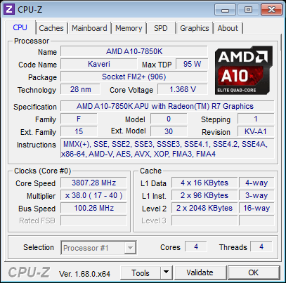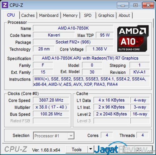 Prosesor akan berjalan standar pada kecepatan seharusnya yaitu 3800 MHz, dengan boost hingga 4000 MHz. RAM berjalan XMP pada kecepatan 2400 C10. GPU pun berjalan normal pada GPU core clock 720 MHz dan GPU memory clock 1200 Mhz (sesuai dengan kecepatan memori DDR3 yang digunakan).