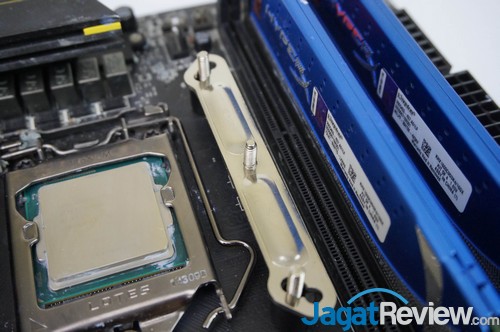 Jarak antara RAM dengan HSF terlihat cukup jauh, sehingga aman jika Anda ingin memakai RAM ber-heatspreader tinggi.