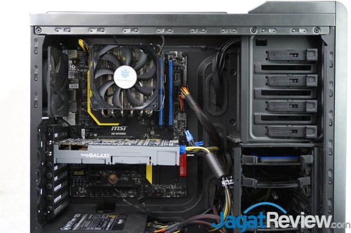 Pemasangannya juga tergolong cukup mudah. Walaupun begitu, terdapat catatan kecil yang harus Anda perhatikan terkait pemasangan crossbar. Pemasangan bagian tersebut terlihat lebih rumit dikarenakan Anda harus mensejajarkan crossbar tersebut ke mounting bracket dengan kondisi heatsink yang terpasang ke motherboard. Satu lagi catatan kecil yang kami dapatkan selama pengujian, suara dari fan bawaan Silverstone ini juga cukup mengganggu saat dijalankan full speed.