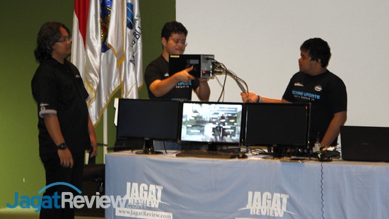 Selanjutnya, tim Jagat Review melanjutkan sesi dengan memperkenalkan beberapa perangkat gaming hemat daya, termasuk sebuah PC Mini-ITX yang bisa menjalankan game di 3 monitor Full HD, PC berukuran 10 x 10 cm yang juga memiliki kemampuan untuk menjalankan game-game terbaru, serta laptop gaming berkemampuan tinggi. Peserta tampak antusias menyimak berbagai hal menarik yang disampaikan oleh tim Jagat Review.