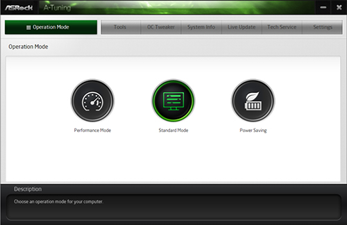 ASRock menyertakan software tuning sederhana untuk melakukan overclocking on-the-fly saat sistem berada di OS, yang dinamakan ASRock A-Tuning. Berikut ini penampilan dari software tersebut