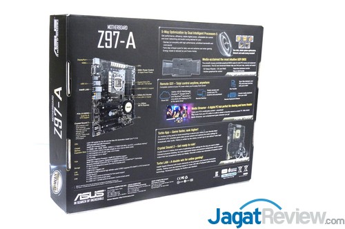 Inilah penampakan dari boks ASUS Z97-A. Terlihat tulisan “5-way optimization” yang nanti akan kami bahas lebih lanjut.