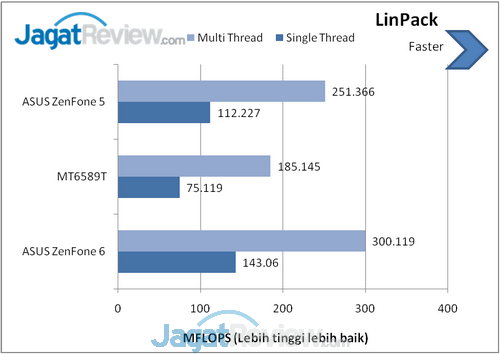 LinPack merupakan benchmark untuk CPU yang digunakan untuk mengukur seberapa cepat perangkat Android Anda. Hasilnya dalam bentuk MFLOPS(Million Floating Point Per Second). Semakin tinggi nilainya, semakin bagus.