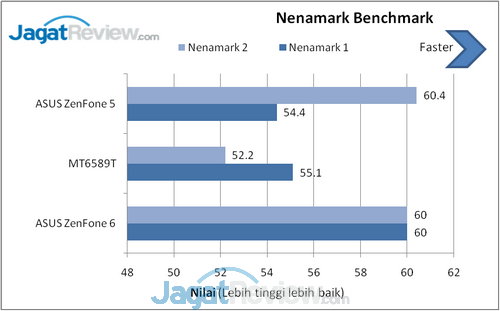 Nenamark adalah benchmark untuk OpenGL ES 2.0. Benchmark ini menampilkan efek grafis yang akan memaksa GPU (Graphic Processor Unit) bekerja secara maksimal. Semakin tinggi nilai yang didapat, semakin bagus.