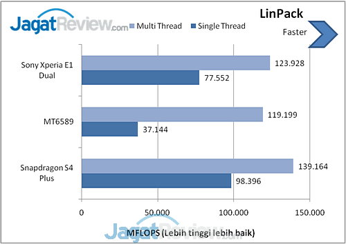 LinPack merupakan benchmark untuk CPU yang digunakan untuk mengukur seberapa cepat perangkat Android Anda. Hasilnya dalam bentuk MFLOPS(Million Floating Point Per Second). Semakin tinggi nilainya, semakin bagus.