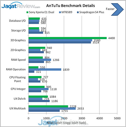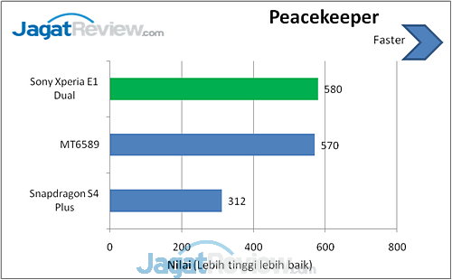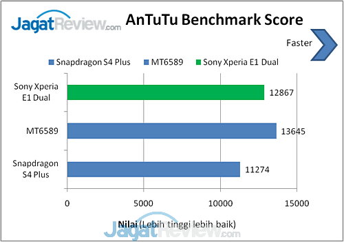 Dari beberapa benchmark yang kami lakukan, terlihat performa Xperia E1 Dual yang berbekal SoC Qualcomm Snapdragon 200 dual-core Cortex-A7 tampil sangat baik. Bahkan, smartphone ini mampu mengalahkan smartphone lainnya yang dibekali MT6589 quad-core Cortex-A7. Ada beberapa kemungkinan kenapa hal itu bisa terjadi, seperti optimalisasi performa pada Android 4.3 Jelly Bean, atau optimalisasi arsitektur dari pihak vendor. Bisa jadi pula karena memori bandwidth yang lebih kencang.