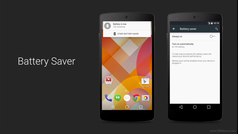 Tentu saja, performa ini akan membutuhkan daya baterai sebagai sumber tenaga utamanya. Android L ini akan dikembangkan performa baterainya dengan memperkenalkan Project Volta untuk mengatasi masalah boros baterai. Battery Saver Mode juga akan diperbaharui yang mampu mengefisiensikan penggunaan baterai supaya tidak cepat habis.