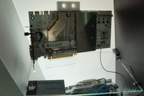 Disini Galaxy menampilkan VGA terkuat mereka, yakni Galaxy GTX 780 Ti HOF V20 yang akan dibundel dengan EKWB Full-cover waterblock. VGA ini dilengkapi dengan desain non-reference, dan dipercaya sebagai salah satu VGA GTX 780 Ti yang memiliki overclockability terbaik di dunia, terbukti dengan banyaknya rekor 3DMark yang dipecahkan.