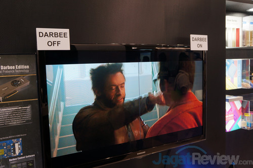 Selain GTX 780 Ti HOF V20, mungkin Galaxy GTX 750 Ti Darbee edition ini adalah benda yang paling menarik di booth Galaxy. Seperti terlihat dibawah, GTX 750 Ti ‘spesial’ ini dilengkapi dengan sebuah mini-card tambahan yang fungsinya melakukan pemrosesan tambahan pada video output dari VGA ini. Bentuk post-processing ini sendiri bermacam-macam. Salah satu contohnya adalah motion interpolation, yang membuat tampilan video yang keluar seperti lebih ‘hidup’ dan ‘mulus’ framerate-nya.
