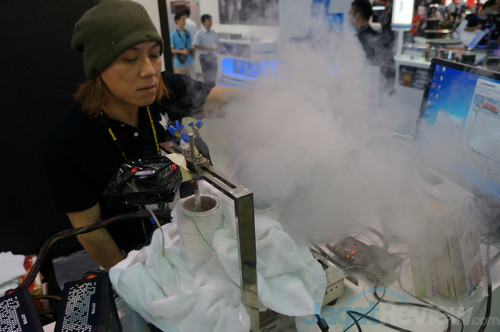 Hal yang pertama sekali kami lihat di booth Galaxy adalah Extreme Overclocking Demo yang digelar setiap hari. Pada demo ini, beberapa overclocker terkenal dari Benua Asia dan Eropa diundang untuk menunjukkan kemampuan GPU Galaxy 780 Ti HOF V20.