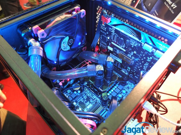 Tidak hanya sebuah VGA kelas gaming dan power supply, Core V1 inipun dapat dipasangkan sebuah watercooling DIY berikut dengan radiator berukuran 12cm dan tabungnya pada bagian depan.