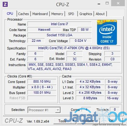 Berikut ini beberapa screenshot CPU-Z dari DC i7-4790K: