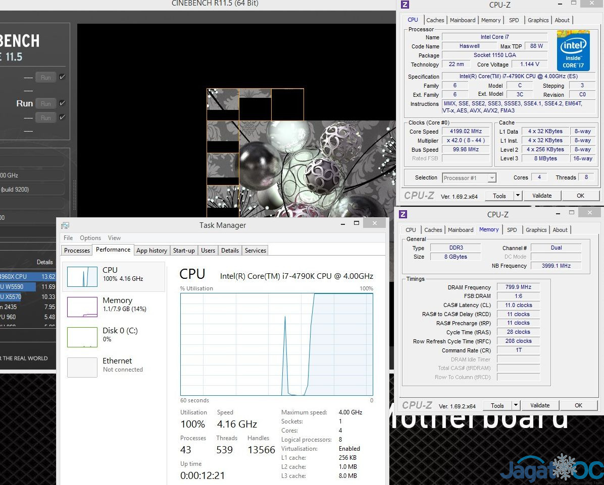 Begitu i7-4790K mendapat load pada ke-empat corenya, kecepatan maksimal yang bisa didapat adalah 4.2Ghz.